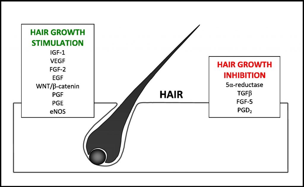 Hair shaft producing cells were proliferated only in the anagen. Many mediators were involved in starting, sustaining and terminating anagen. Among them, we focused on the growth factor FGF-7 and FGF-5. Our results reveal the hair growth enhancing effects of EP were related with the anagen regulating growth factors. mTOR activating the potential of EP in HDPs was signifying that it exerts the positive role in the proliferation of follicular cells during anagen.